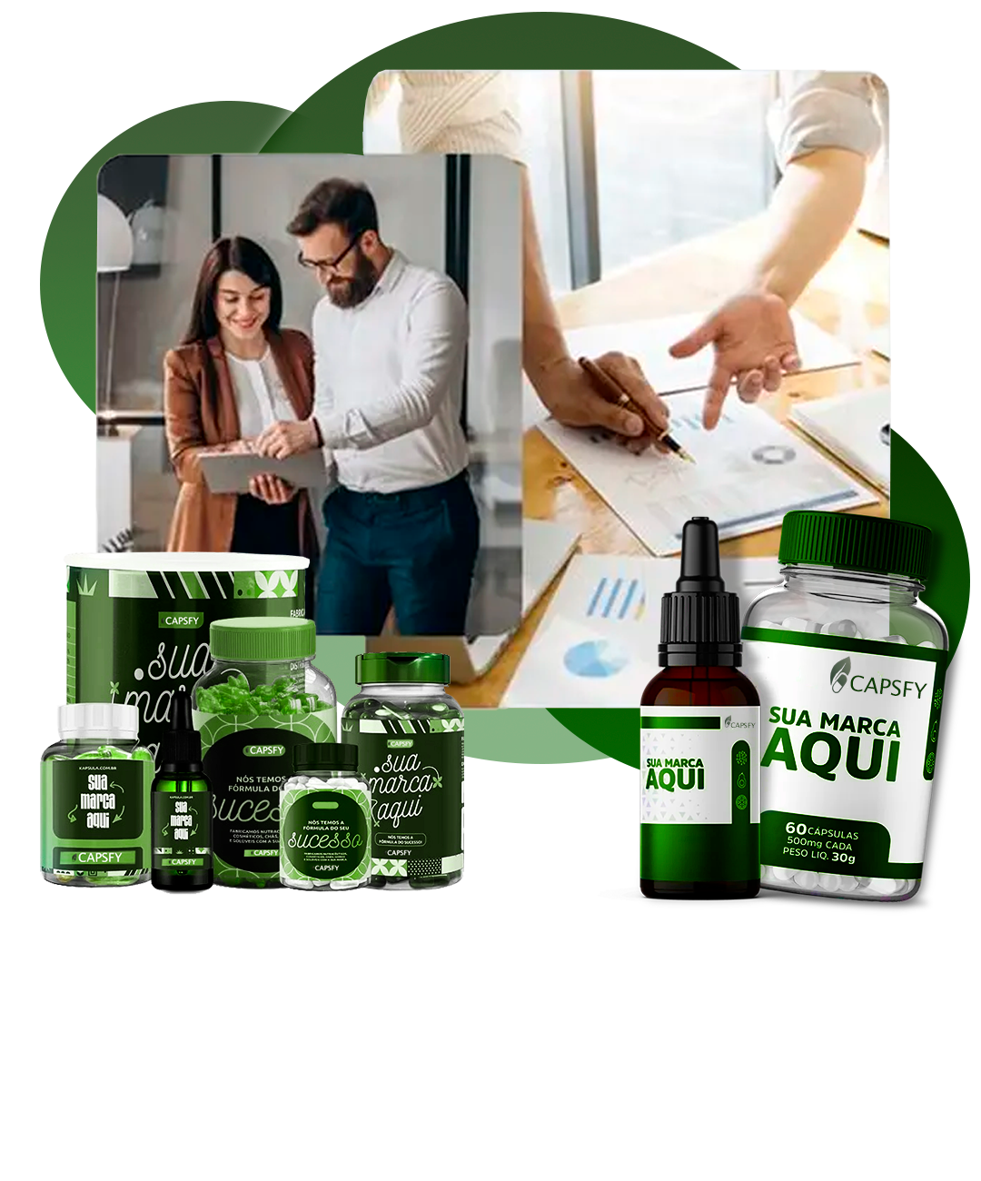 Com ingredientes com a mais alta qualidade do mercado e com potencial para criar produtos que realmente funcionam, escolhendo a Capsfy como sua parceira, você pode trabalhar com encapsulados ou gotas, e sem nenhum custo adicional!